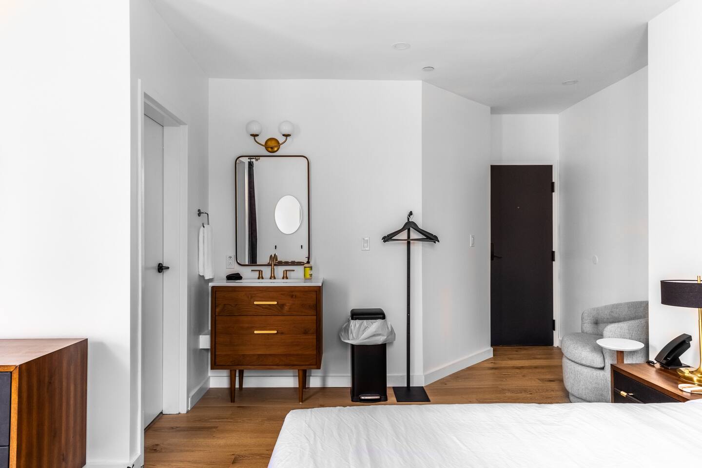 A studio style 2nd floor corner unit w/ views of the Kenduskeag canal: • SMEG drip coffee maker w/ locally roasted coffee, cream, sugar, & Boxed waters provided. • Mini fridge • Teak wood vanity w/ hairdryer in top drawer • Marble floor bathroom w/ step-in shower THE BUILDING & COMMON AREAS: • Beautiful Lobby w/lots of seating. Chess & Checkers game table. • Water & ice dispenser, microwave, & luggage storage room. • Chimera Coffee shop located on ground floor of the building • Free guest laundry room