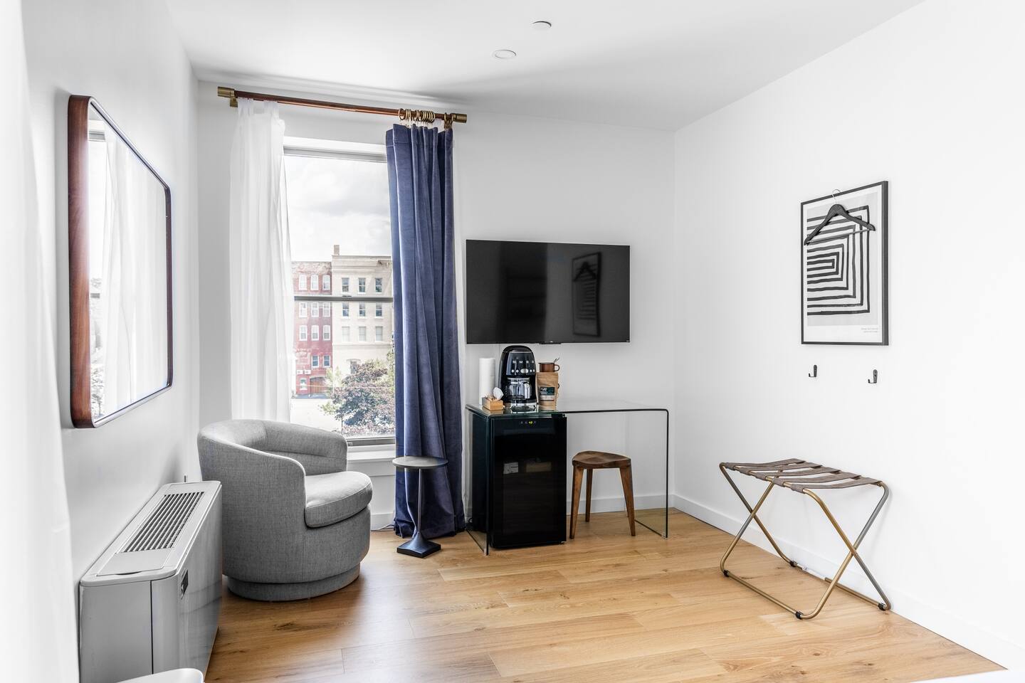 A 3rd floor studio style unit: • SMEG drip coffee maker w/ locally roasted coffee, cream, sugar, & Boxed waters provided. • Mini fridge • Teak wood vanity w/ hairdryer in top drawer • Marble floor bathroom w/ step-in shower THE BUILDING & COMMON AREAS: • Beautiful Lobby w/lots of seating. Chess & Checkers game table. • Water & ice dispenser, microwave, & luggage storage room. • Chimera Coffee shop located on ground floor of the building • Free guest laundry room