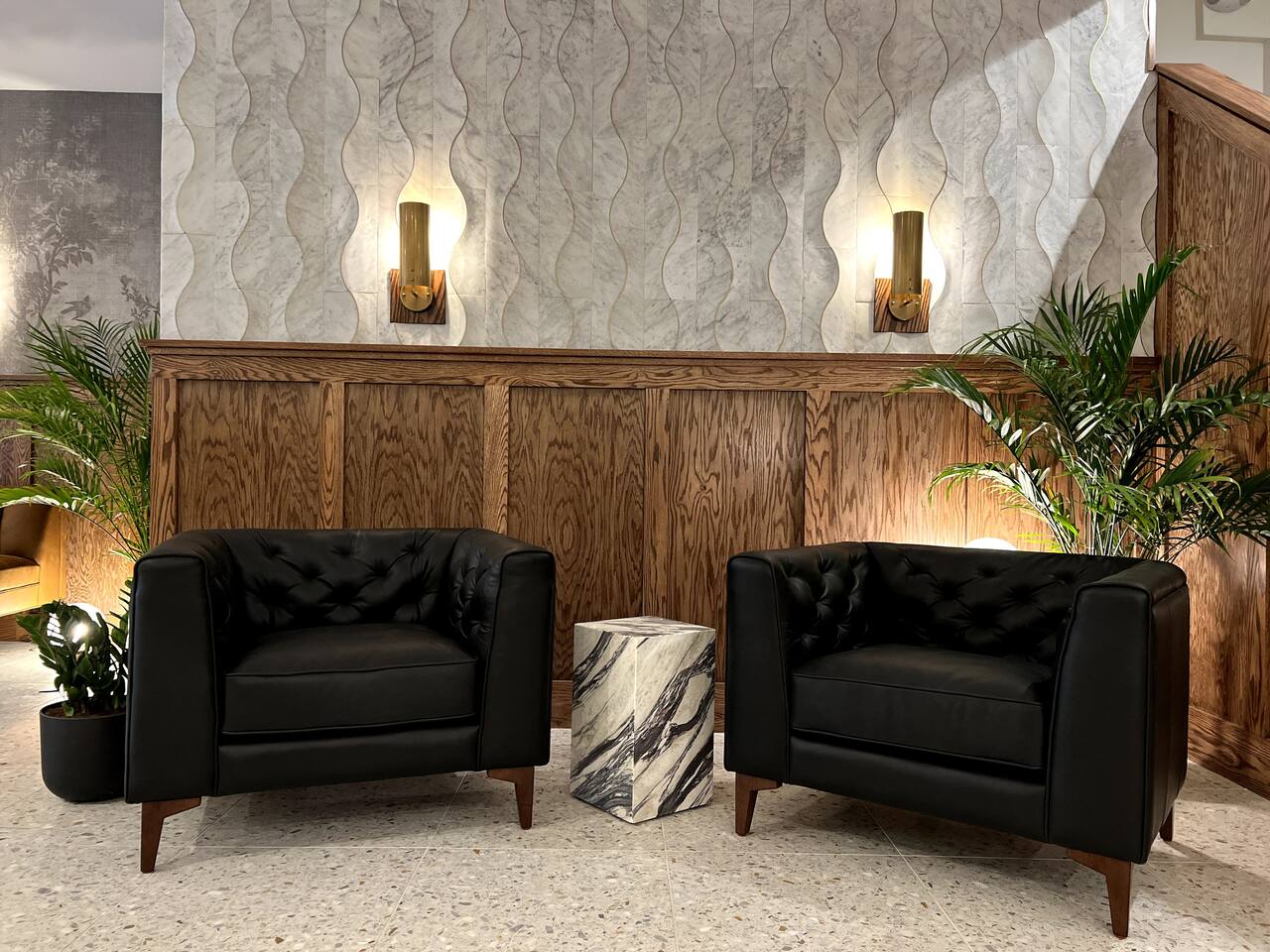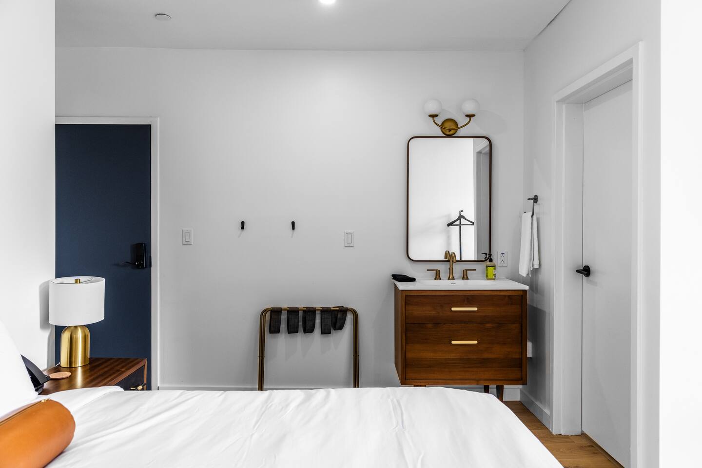 A ground floor studio style end unit: • SMEG drip coffee maker w/ locally roasted coffee, cream, sugar, & Boxed waters provided. • Mini fridge • Teak wood vanity w/ hairdryer in top drawer • Marble floor bathroom w/ step-in shower THE BUILDING & COMMON AREAS: • Beautiful Lobby w/lots of seating. Chess & Checkers game table. • Water & ice dispenser, microwave, & luggage storage room. • Chimera Coffee shop located on ground floor of the building • Free guest laundry room