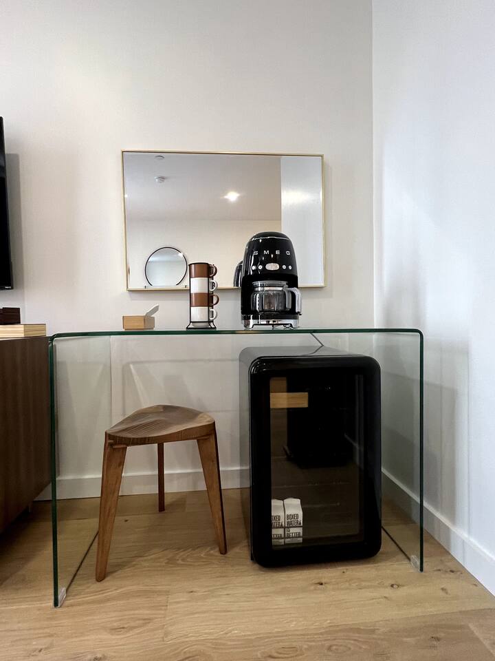 A 2nd floor studio style unit: • SMEG drip coffee maker w/ locally roasted coffee, cream, sugar, & Boxed waters provided. • Mini fridge • Teak wood vanity w/ hairdryer in top drawer • Marble floor bathroom w/ step-in shower THE BUILDING & COMMON AREAS: • Beautiful Lobby w/lots of seating. Chess & Checkers game table. • Water & ice dispenser, microwave, & luggage storage room. • Chimera Coffee shop located on ground floor of the building • Free guest laundry room