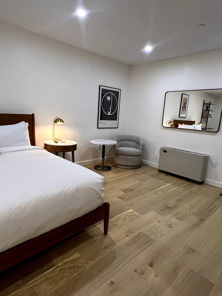 A studio style ground floor unit: • INTERIOR room-no windows. • SMEG drip coffee maker w/ locally roasted coffee, cream, sugar, & Boxed waters provided. • Mini fridge • Teak wood vanity w/ hairdryer in top drawer • Marble floor bathroom w/ step-in shower THE BUILDING & COMMON AREAS: • Beautiful Lobby w/lots of seating. Chess & Checkers game table. • Water & ice dispenser, microwave, & luggage storage room. • Chimera Coffee shop located on ground floor of the building • Free guest laundry room